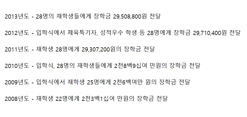 2016년 - 재학생 35명의 학생들에게 3,500만원의 장학금 전달
